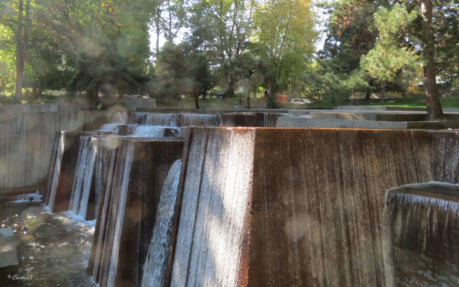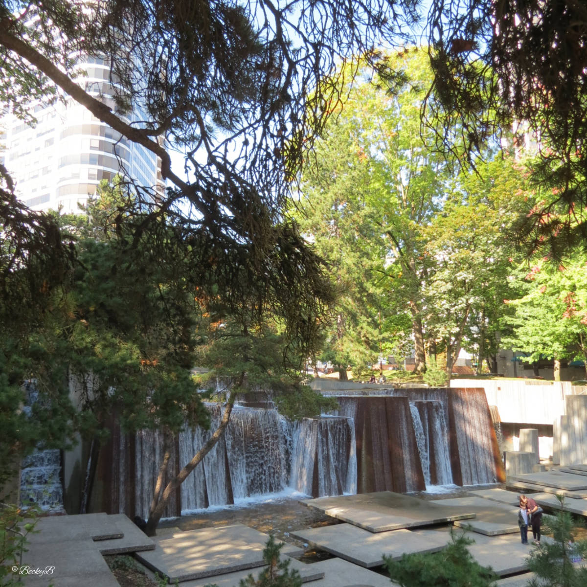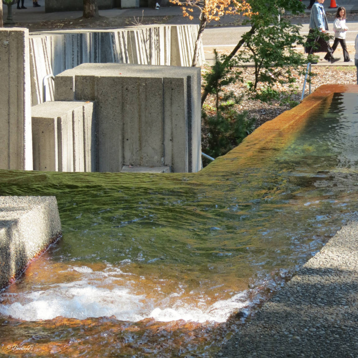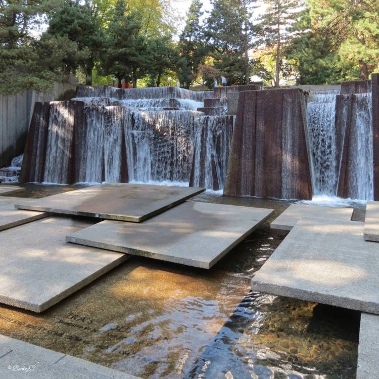 This masterpiece was designed by Angela Danadjieva, a landscape architect from Bulgaria who initially worked in the Bulgarian film industry as an art director and set designer. By the mid 1960s she had returned to her architectural roots and was working on urban design and city planning on the west coast of the United States. This fountain was her first large scale project but she is more well known for her creation of Freeway Park in Seattle.