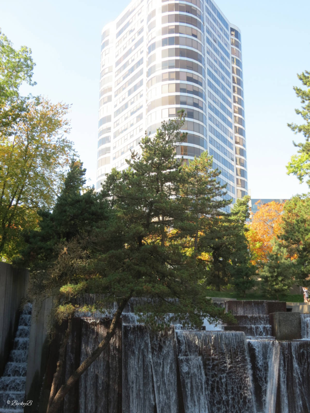 13,000 gallons of water per minute cascade through its many terraces and platforms, and when you stand in the centre of it you’d almost think you were in the middle of a forested gorge. Instead you are just a few yards from the Civic Auditorium in downtown Portland.