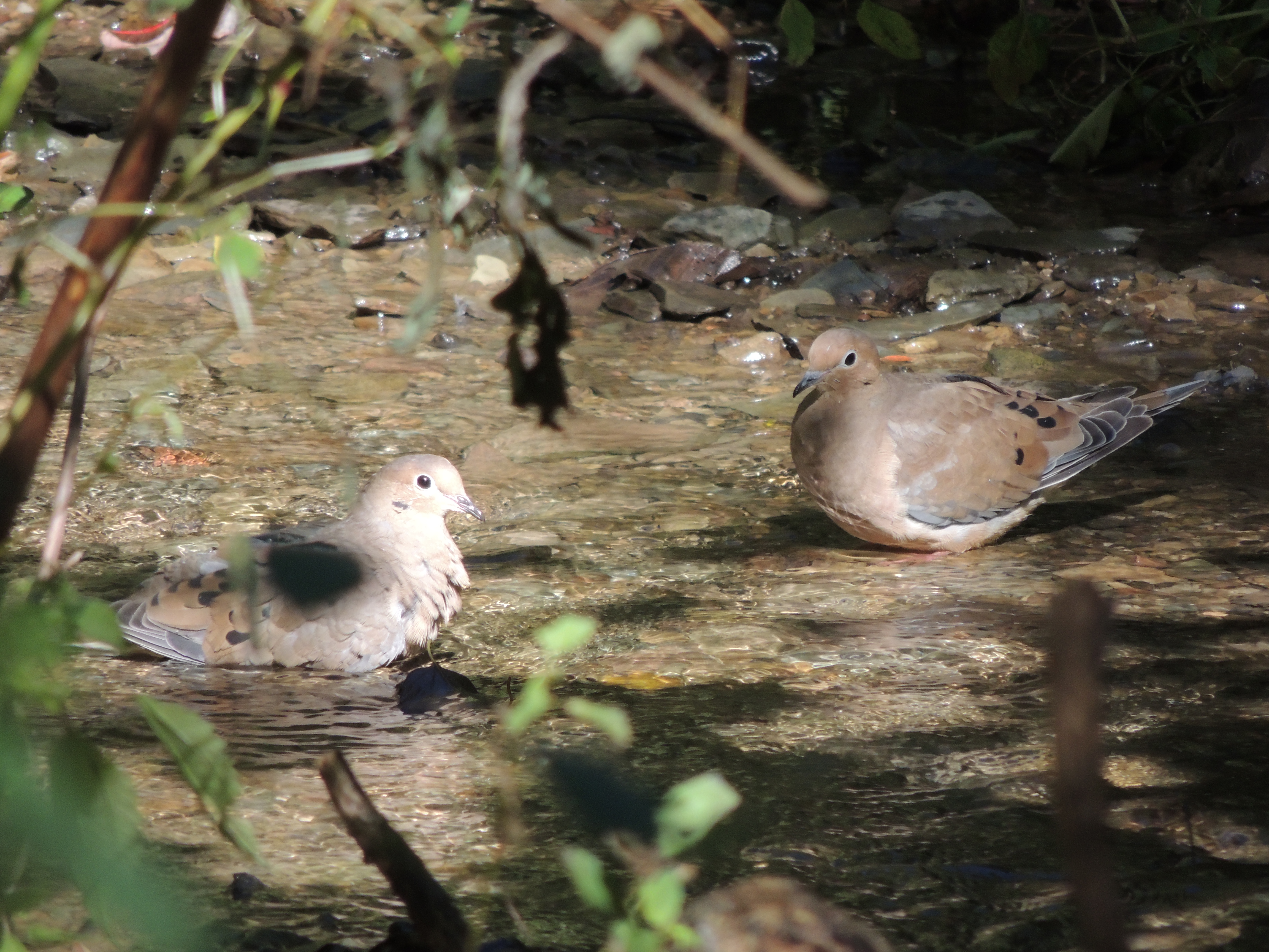 Doves wading